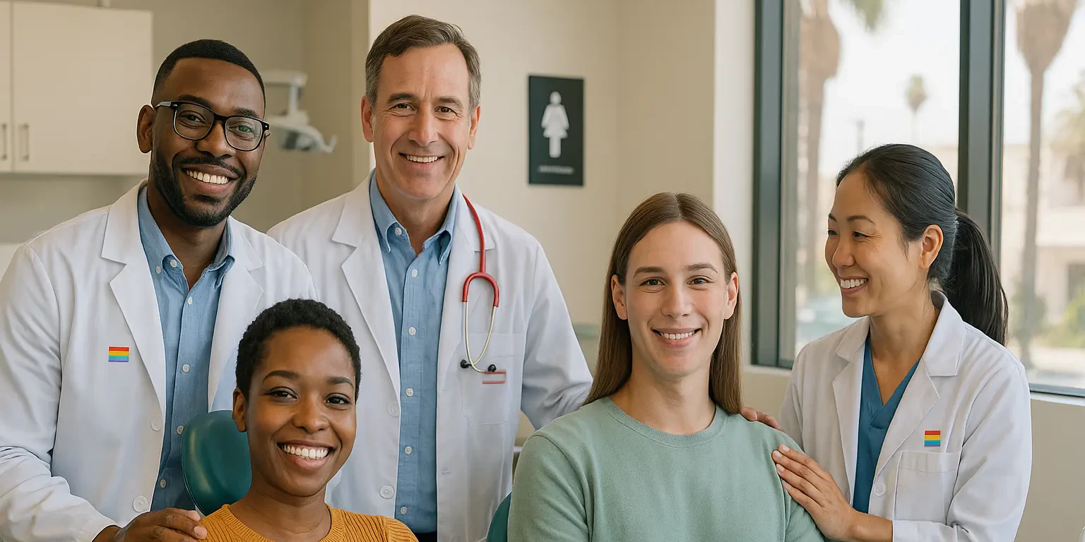Look for visible signs of inclusion — such as LGBTQ symbols, gender-neutral forms, and a welcoming staff attitude. Reading patient reviews can also help you find places that match your comfort level.